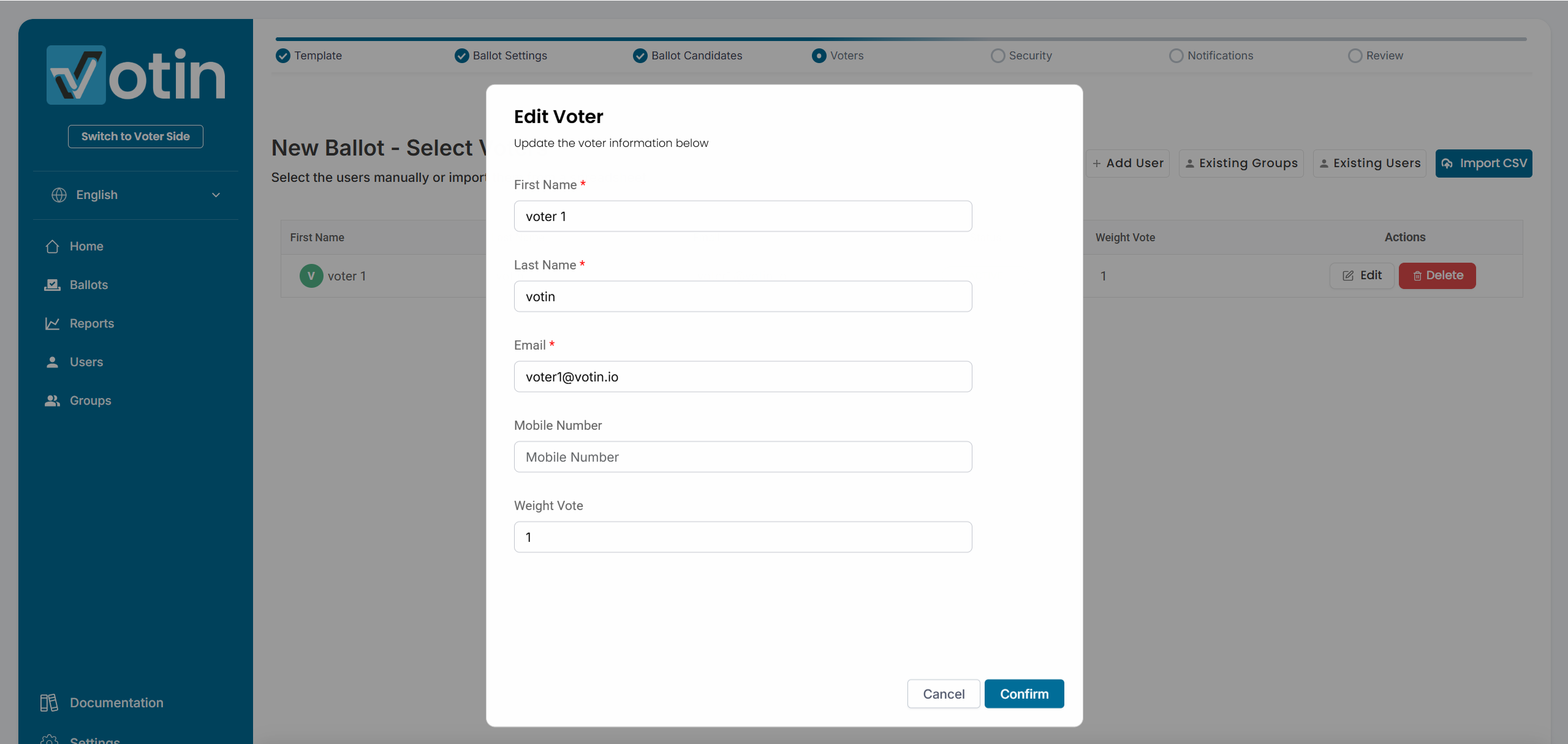- During voter import via CSV: Include the weight column in the CSV file when adding voters to the platform.